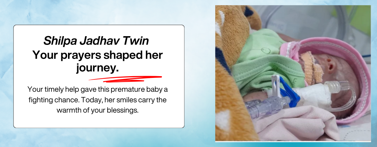 In moments when hope was fading and lives hung by a fragile thread, you became the light that illuminated the path to recovery. With every contribution you made, you didn’t just offer financial support — you gifted life, dignity, and a future to those who were struggling to hold on. Because of your selfless giving, Baby of Shilpa Jadhav Twin received life-saving medical treatment that once seemed out of reach for their family. You didn’t just donate — you became a part of their journey, their strength, and their miracle. Parents who once prayed with trembling hands now cradle their children with gratitude in their eyes. Children who once fought silent battles in hospital beds now laugh, play, and dream — because of you. Your compassion crossed every boundary of distance and background. You proved that humanity shines brightest in times of need. On behalf of the grateful families, the little warriors who fought their battles bravely, and the entire Anekaa Care Foundation team —we extend our deepest, most heartfelt gratitude to you. You are not just donors — You are life-changers, hope-restorers, and silent heroes of countless untold stories. Let’s continue weaving stories of survival, strength, and smiles together. Because every child deserves a life filled with dreams — and because you have shown the world what true kindness looks like.