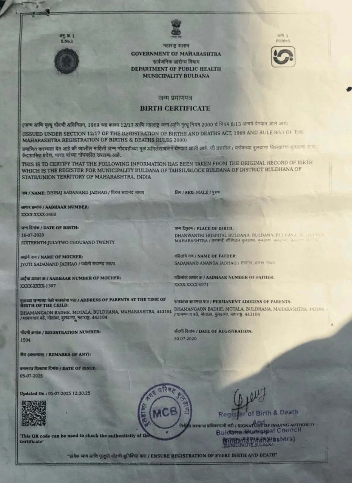 Dhiraj belongs to a financially underprivileged family from Dhamangaon, District Buldhana, Maharashtra.
