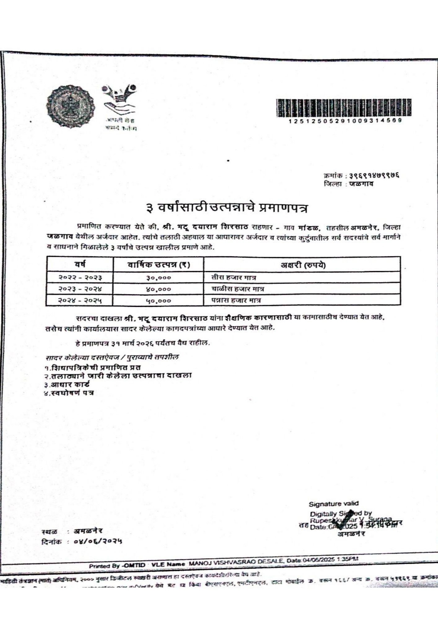 Patient Name: Master Chetan Bhatu Shirsath
