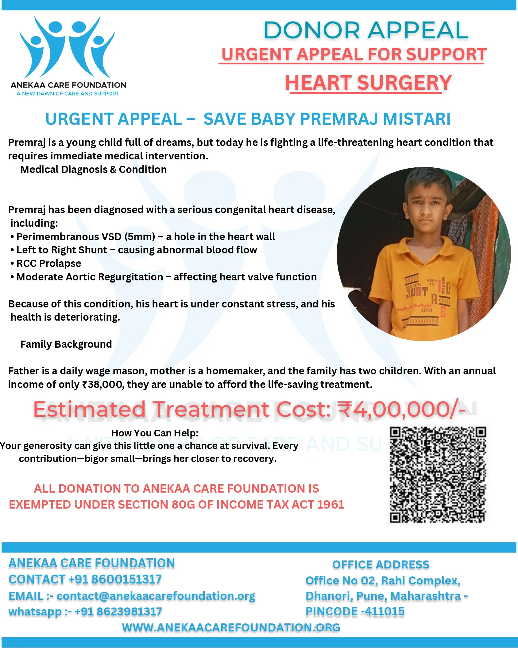 Your support can help save Premraj’s life by enabling timely heart surgery and critical care.