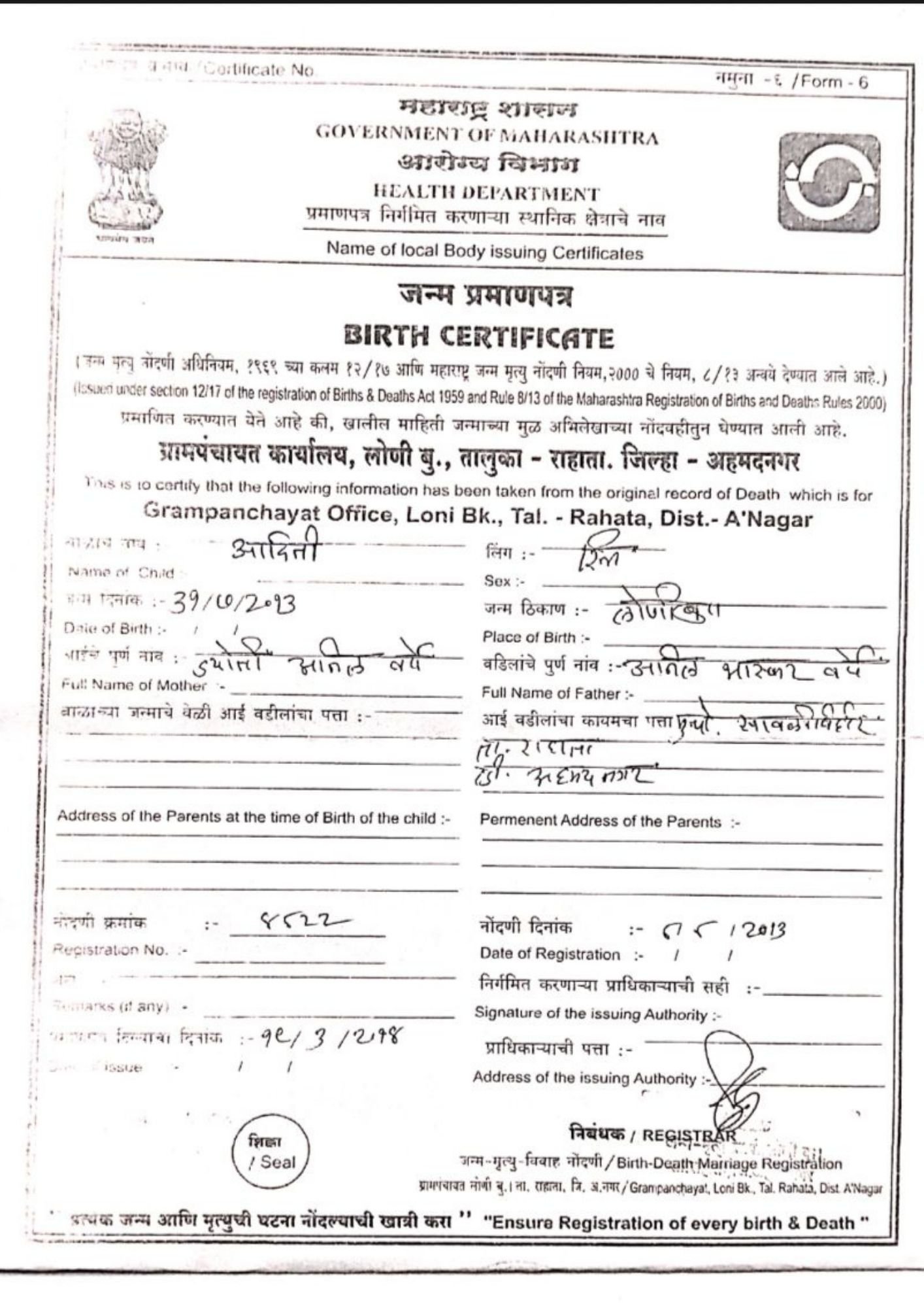 Baby Boy of Deepali Abhijit Pawar