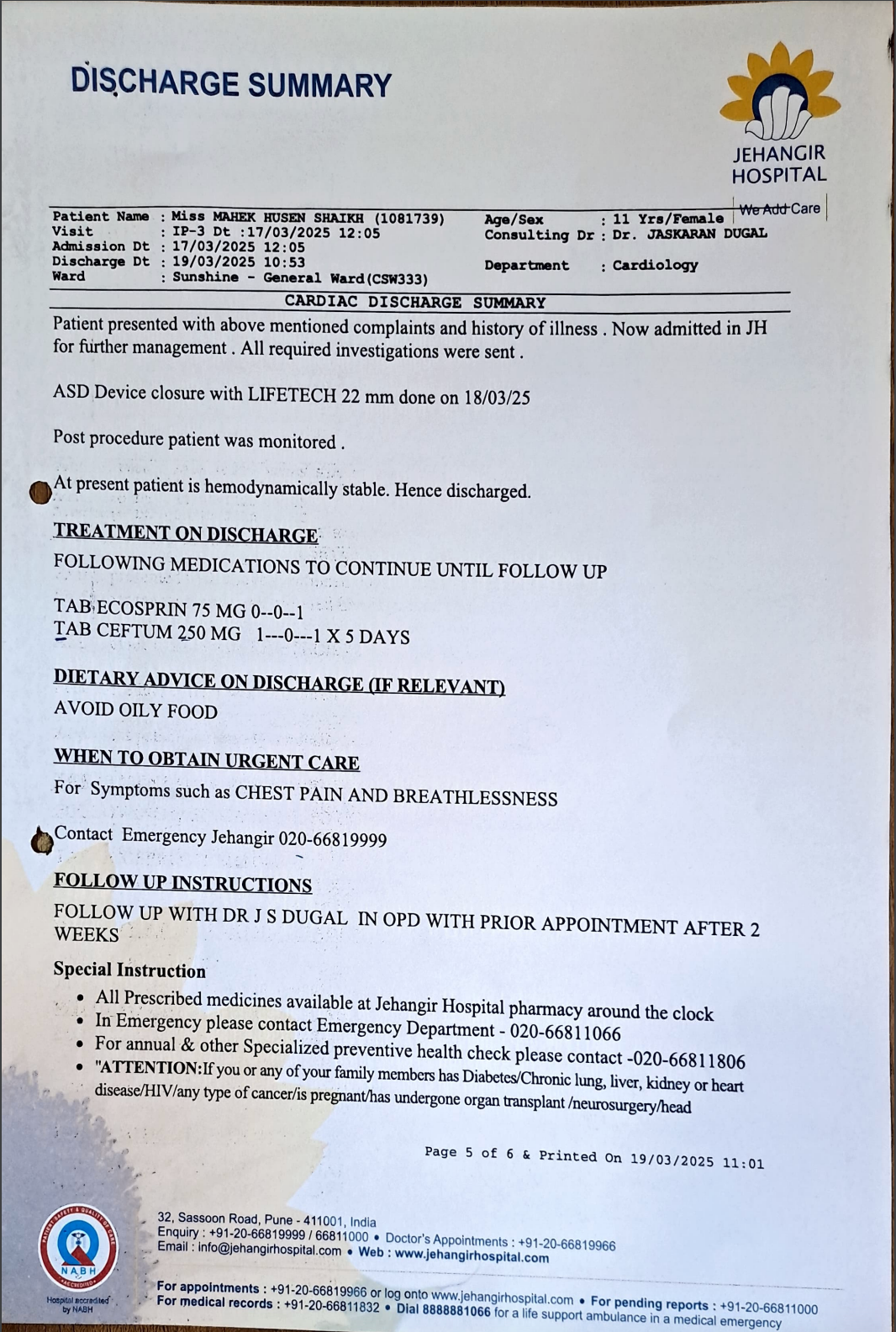 In moments when hope was fading and lives hung by a fragile thread, you became the light that illuminated the path to recovery. With every contribution you made, you didn’t just offer financial support — you gifted life, dignity, and a future to those who were struggling to hold on. Because of your selfless giving, Mahek Shaikh received life-saving medical treatment that once seemed out of reach for their family. You didn’t just donate — you became a part of their journey, their strength, and their miracle. Parents who once prayed with trembling hands now cradle their children with gratitude in their eyes. Children who once fought silent battles in hospital beds now laugh, play, and dream — because of you. Your compassion crossed every boundary of distance and background. You proved that humanity shines brightest in times of need. On behalf of the grateful families, the little warriors who fought their battles bravely, and the entire Anekaa Care Foundation team —we extend our deepest, most heartfelt gratitude to you. You are not just donors — You are life-changers, hope-restorers, and silent heroes of countless untold stories. Let’s continue weaving stories of survival, strength, and smiles together. Because every child deserves a life filled with dreams — and because you have shown the world what true kindness looks like.