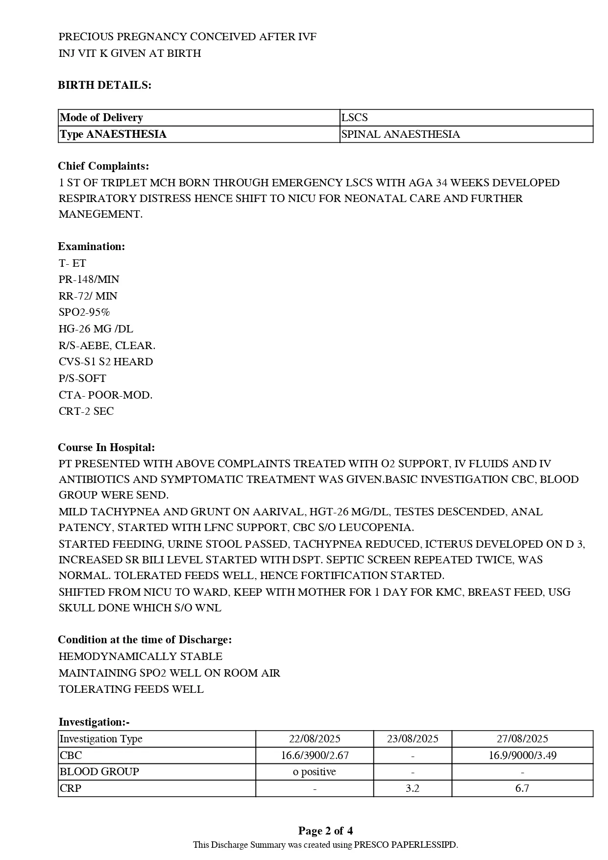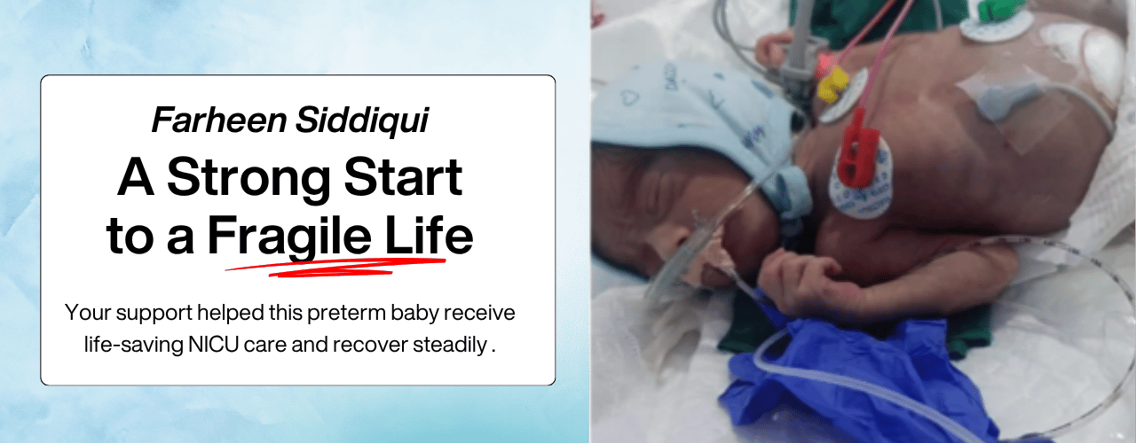When a baby is born too soon, every minute becomes a fight for breath, warmth, and survival. Baby of Farheen Parveen Siddiqui, born as the 1st of triplets, arrived into this world at just 34 weeks, weighing only 1.53 kg. Within hours, she struggled with severe respiratory distress, RDS, EONS, rising bilirubin levels, and feeding difficulties.Thanks to your kindness, she received the urgent NICU treatment she needed — oxygen support, IV fluids, antibiotics, symptomatic care, phototherapy, and continuous monitoring. Slowly, her breathing stabilized, feeds improved, and her tiny body fought its way toward recovery.Your generosity made this possible. You weren’t just a donor — you became a lifeline for a newborn who couldn’t survive without timely medical care. Because of you, her family found hope during one of the hardest weeks of their lives.Parents who were terrified for their premature baby can now hold her with relief and gratitude. From unstable vitals to stable room-air breathing, from feeding struggles to improved tolerance — your support carried her through every fragile moment.Let us continue supporting children like her — tiny lives that depend on our kindness, compassion, and humanity. Thank you for proving that hope grows stronger when good people stand together.